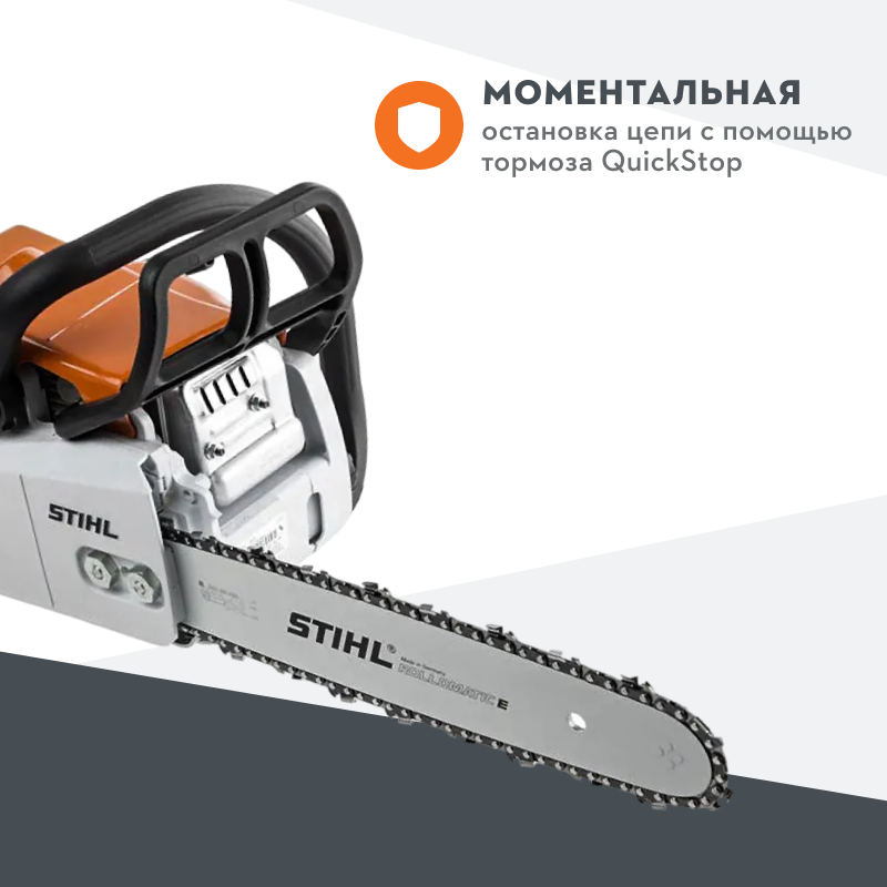 Да, разница вроде бы не так уж велика, но, тем не менее, новая пила будет чуть-чуть мощнее. Но есть и еще кое-что. На MS 182 ставится фирменный 2-тактный мотор 2-MIX. Это уже не «классический двухтактник», а более современный движок. Если объяснять без сложной теории, то суть в том, что внутри цилиндра смесь продувается по двум каналам. В итоге, топливо сгорает максимально эффективно. И снижается количество вредных выбросов.